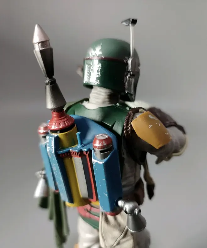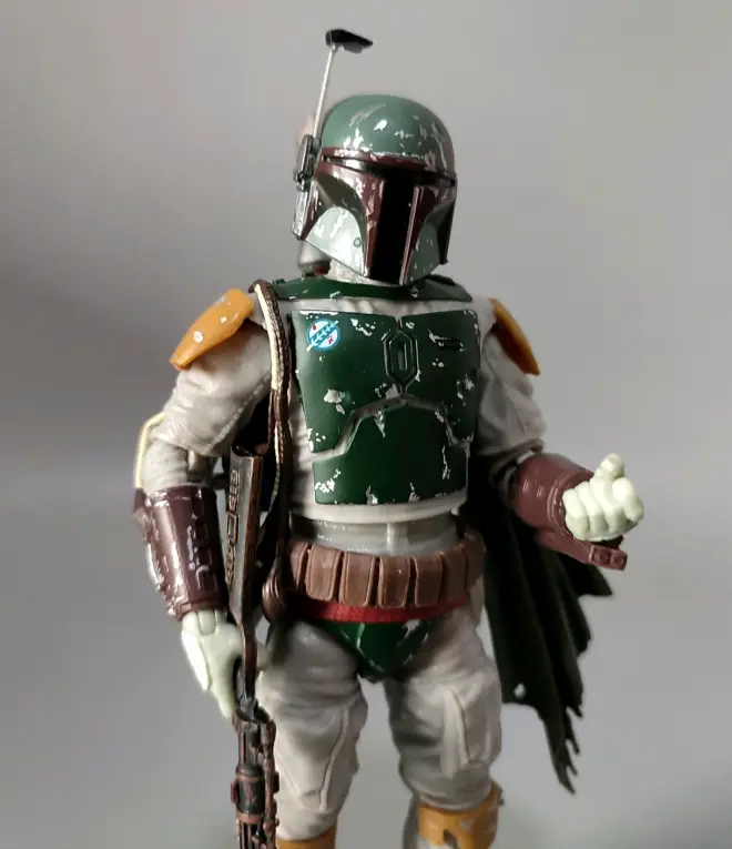 简单聊点,我不是黑盒玩家,手里只留一只人偶随手把玩,如果只能玩一款,波巴应该是最合适的选择,在肯纳时代就是最受欢迎的玩具。这次6寸波巴的素质很高,只是头盔会有挤压,需要用热水或者吹风机重新捏一下,不太明白很多看相关评测里没人这么干,波巴的头盔是相对非常宽和扁的,把头盔重新塑型一下就非常正了。