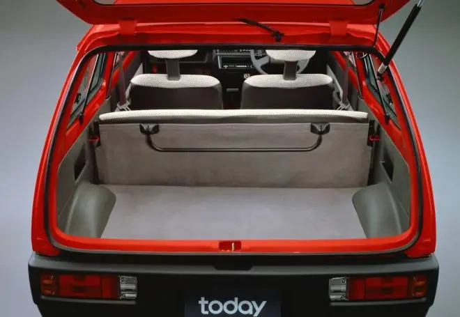 与此前的City一样,Today也同样遵循MM思想,但比起初代City那种往高处延伸的设计不同,Today的思路是“横向发展”。比起同年代的k-car动辄接近1400mm的车高,Today的身高不过1315mm,而轴距也比对手长了100-150mm,达到了2330mm的水平(比初代City要长)。再加上极短的发动机舱……这样的Package,在确保车内空间的同时,也让它有着低重心的特性。另外,比起同级对手,Today的行驶稳定性也更强。