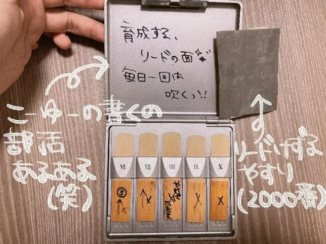 わからない人は調べてみてw厚みがちょうど良くないと上手く吹けなかったりして、自分好みに育てるの。でも良いリードに限ってケースにぶつけて割ったりとか、、、ね。