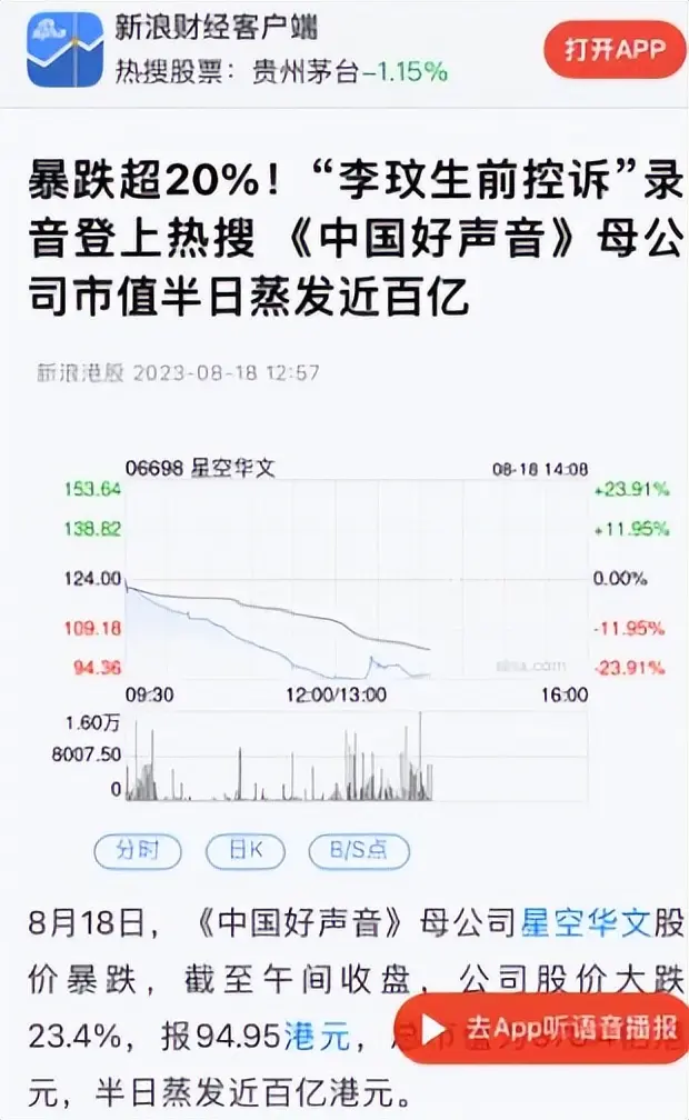 8月24日,《中国好声音》母公司星空华文突然登上热搜。原因是这家公司在股价暴跌三日后。竟然出现了二连涨的反弹,涨幅高达10%,一度惊呆各位到处搬着凳子赶场的吃瓜群众。