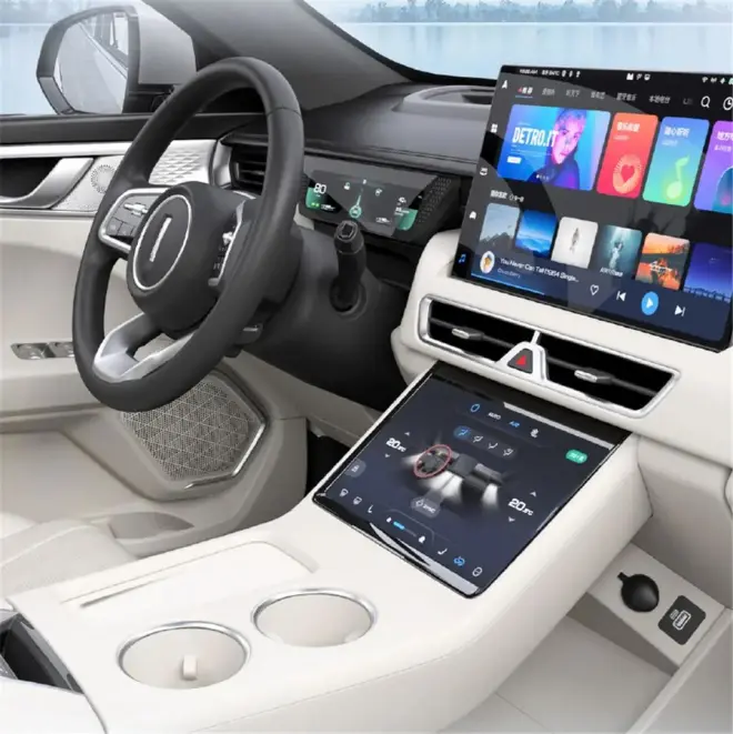这次摩卡DHT-PHEV的改款,就连内饰也花了不少功夫,除了换上全新的方向盘样式,从空调出风口开始一路往下的地方,也基本上重新设计了一遍,换挡形式改成了怀挡,负责控制空调的触控屏幕也加大了尺寸,原本一整片的斜坡也改成只有屏幕部分倾斜,还加入了手机无线充电模块。