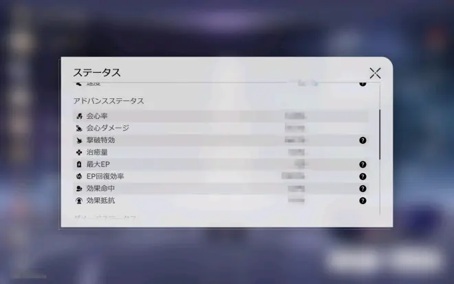 效果命中(*对敌人造成负面效果的概率):効果命中(*敵にデバフを付与する確率)