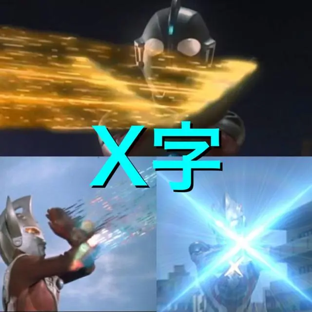 X字型的光线动作,通过双手交叉的方式发射光线,代表奥有艾克斯奥特曼,他的必杀技就是最好的例子,因为看起来非常帅气,首先施展一个前摇动作,右手从计时器上方抬起,左脚在地上比作一个圈,积累能量,然后双臂向左移动,能量积累后双手交叉在胸前发出扎纳帝姆光线击败敌人。