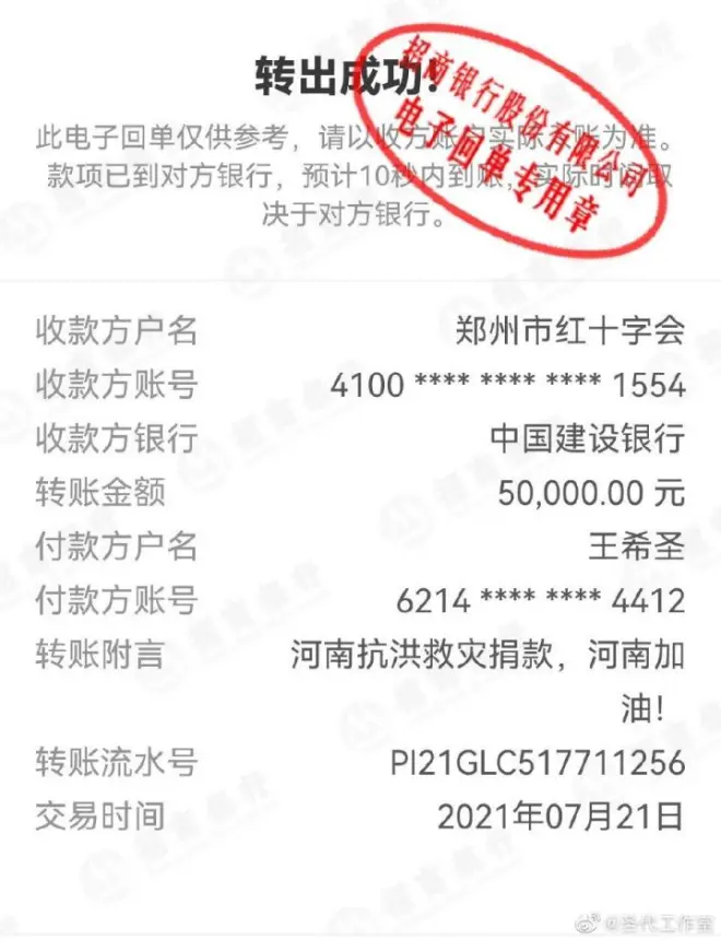小鬼王琳凯通过公司向河南灾区捐款20万元。