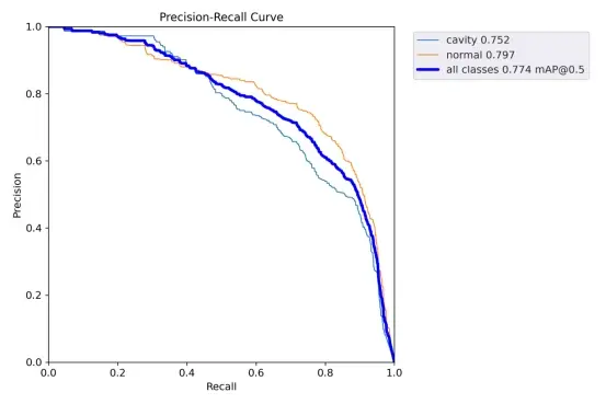 下图展示了我们训练的YOLOv5模型在验证集上的PR曲线,从图中可以看出,模型取得了较高的召回率和精确率,整体表现良好。