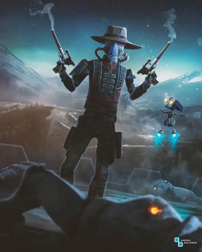 来自行星杜罗的凯德·贝恩是一名无情的赏金猎人。他是克隆人战争期间银河系出类拔萃的雇佣枪手。对贝恩来说只要价格合适任何猎物都不是他的对手。如果有必要,冷酷精明的贝恩可以利用强大的武器和盟友毫不夸张地追踪目标到银河系的尽头。贝恩拥有自制双枪、带控制设备的金属护腕、暗藏的绳索、炸藥、植入身体的呼吸器和火箭靴,保证他在任何可能出现的状况下都应对自如。
