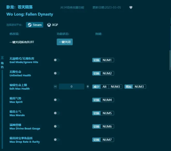 以下是卧龙苍天陨落修改器的修改内容,一直保持更新