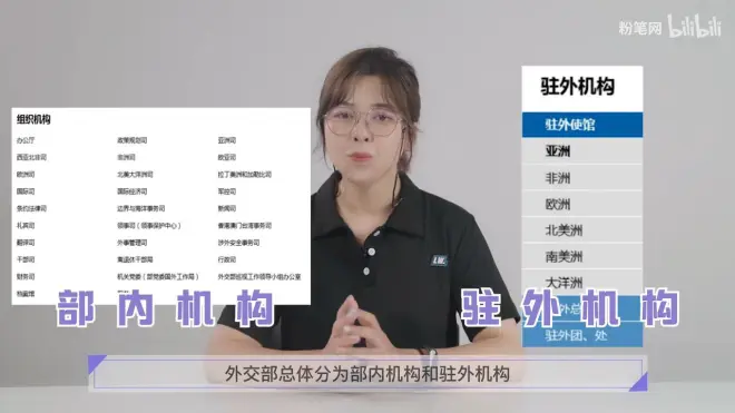 简单介绍一下外交部的构成。外交部总体分为部内机构和驻外机构。