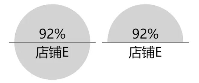 1.半圆显示 2.数据标签和类别标签同时显示 3.半圆底部有一条淡淡的灰色线条进行大小比较提示