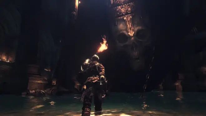 熏烟湖里有放置十字弩的整片湖区,实际上这曾经是一个BOSS房,在这里你会与一只巨大的蝙蝠交战,你可以(将自己当靶子,利用弩箭)摧毁地面来躲避BOSS,然后再使用大型弩车来对它造成伤害,这是(恶魂)龙神和(魂1)喀拉弥特机制的结合,接着在第二阶段会出现巨大的沙虫。