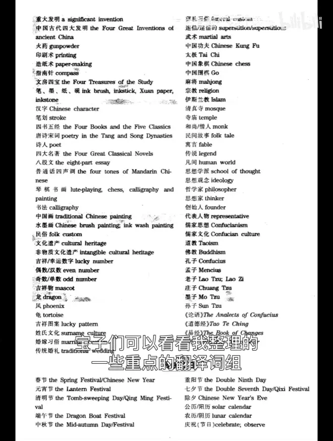 【四六级翻译出自这本书,3月延期必看】中国文化概况重点词组已划分好主题!!...的评论 (共