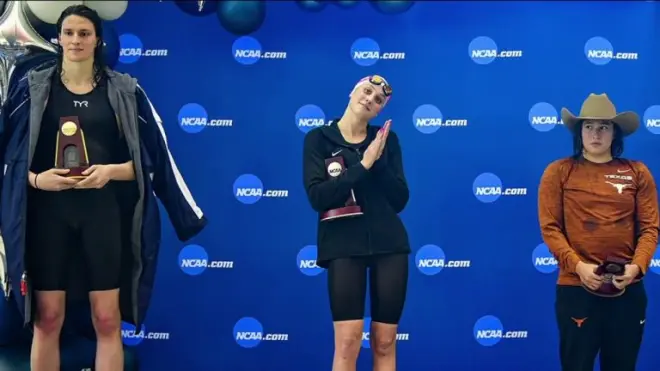我之前做过一个视频介绍这位Lia Thomas。她在美国大学全国游泳比赛上赢得了女子50比赛的金牌,当时引来了疯狂的争议。