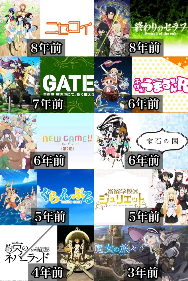 接下来还有《伪恋》《终结的炽天使》等,感觉上刚播不久的《约定的梦幻岛》和《魔女之旅》都是三四年前的动画作品了,确实是时光飞逝。