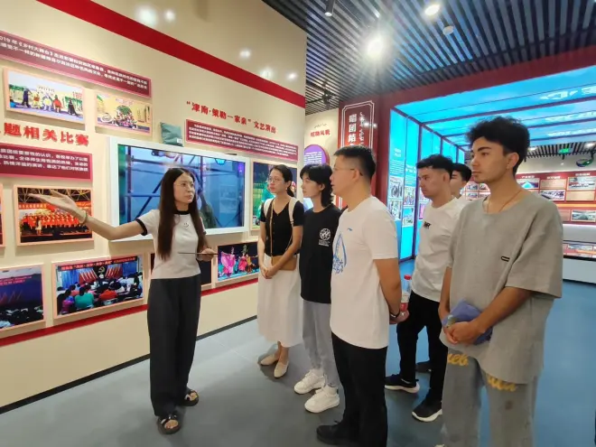 实践团成员随后来到“策勒县天津援疆民族团结馆”。经讲解员介绍,2021年,在天津市大力援助下,策勒县精心打造了民族团结馆,以图片、文字、实物和多媒体等方式展示了策勒县各民族团结进步的发展历程和取得的伟大成就。场馆展出共分为5个主题,历史篇展示了策勒县历史沿革、发展变化,展现了从无到有,从城市到农村的变化的方方面面;典型篇讲述了民族团结先进个人无数个感人故事,其中买买提依布热依木·买买提明是巴什玉吉买村党支部书记,他在2017年两次受到习近平总书记和李克强总理亲切接见,回到家乡后他一口气做了一百余场的宣讲,把总书记的殷殷嘱托传递到基层群众中;交融篇展示了天津援疆干部、和田地区的各族干部群众交往、交流、交融的点点滴滴,介绍了天津市通过产业援疆、医疗援疆、教育援疆、文化润疆、项目援疆的五大援疆举措;乡村振兴篇展示了全面打响脱贫攻坚战以来,策勒县贯彻执行中央精准扶贫政策的工作措施和工作成效;文化篇则介绍了策勒历史文化、旅游资源、特色农产品等。