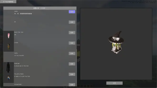 先在游戏中安装新CPM(别忘了装前置,也别装错了,我曾经在fabric端装了个forge版的):[CPM]自定义玩家模型 https://www.mcmod.cn/class/6090.html