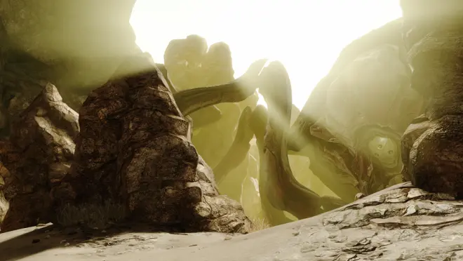 在发现制品位于墙壁后的先行者设施中时,UNSC意识到这台收获号正是用来发掘设施的,但它的舱门由一堵能量屏障挡住。在深红清空附近的防空威胁后,鹈鹕号入场发动攻击摧毁了屏障。深红消灭了它的机组人员并解救了科学家,后者向他们透露了星盟试图修复收获号的经过。