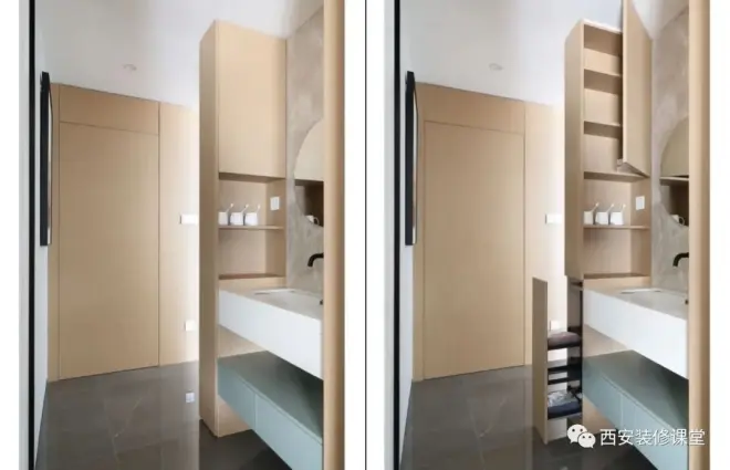 ▲千万不要学网红设计或者样板间设计,完全是没有生活经验的做法,刚需卫生间是为了过日子,而非所谓让人参观拍照的,等你入住了才发现生活并不是那么理想化,乱就成了无可挽救的遗憾了