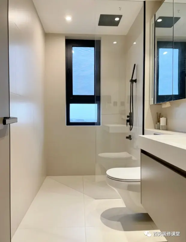 ▲首先不论功能上能否实现干湿分离,颜色上一定要采用浅色系搭配,视觉上放大空间,看起来更清爽干净,这也是最基本的搭配原则《卫生间浅色柔光瓷砖,简单干净,适合小空间装修》