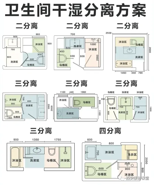 ▲除过干湿分离以外,还可以做三分离甚至四分离,比普通干湿分离更好,但是一般小户型卫生间能实现干湿分离已经算不错的做法了《无法实现干湿分离,可以借用过道》