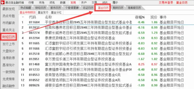 099.在通达信电脑版中,如何查看基金日历?