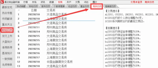 100.在通达信电脑版中,如何查看期货日历?
