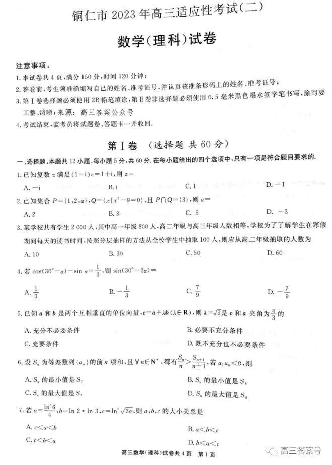 高三答案号公众号