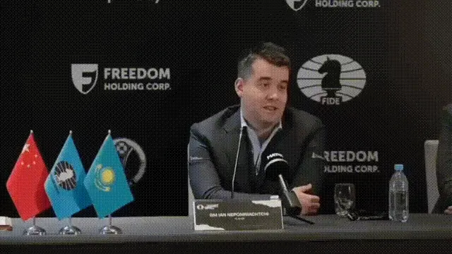 涅波在新闻发布会上开始时尽可能地干脆利落地回答,但活动期间出现的技术和组织困难越多,这位俄罗斯特级大师的言论就越具有讽刺意味。
