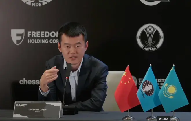 丁立人谈到他参加的比赛:"我很惊讶成为挑战者,我对卡尔森决定不卫冕感到非常惊讶。我可以在历史上写下我的名字。如果我做到了,那将是巨大的荣耀。"