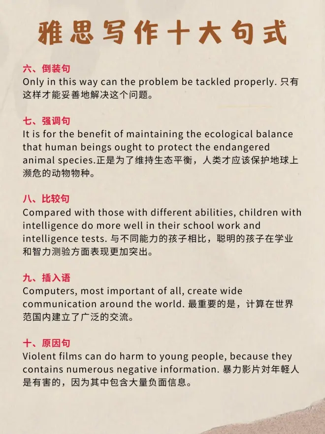 倒装句、强调句、比较句、插入语、原因句十大句式