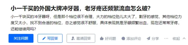 (上图为冲牙器伤牙原因统计数据,来自口腔论坛)