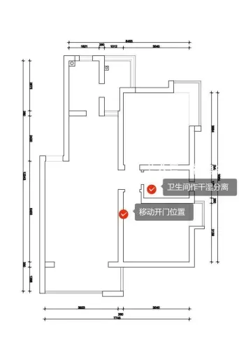 2. 主卧的开门位置向卧室方向移动,更好保护私密性。