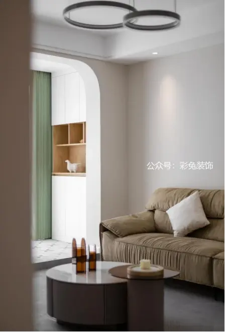 电视墙不做过多设计,低矮的电视柜与圆形茶几成套配置,让客厅更显和谐感。