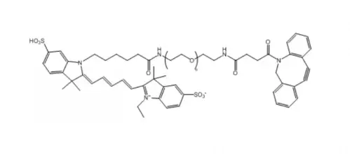 Cy5-PEG-DBCO,Cy5 (Cyanine 5) 是一种发远红(far-red)荧光的花青素荧光染料