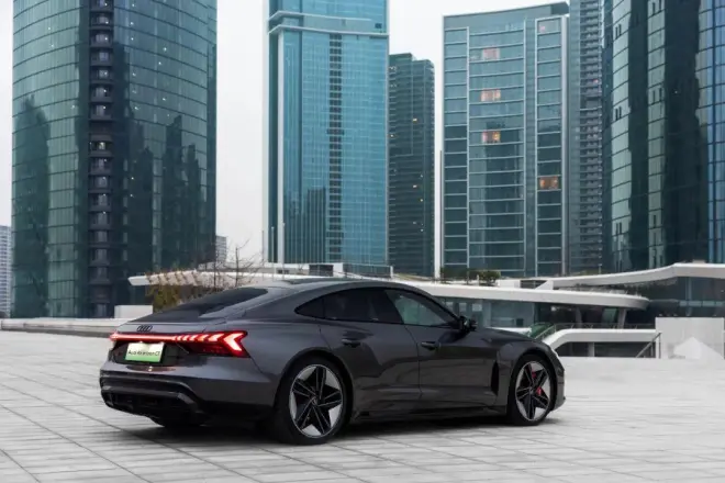 整个车身构造严格遵循了奥迪“形式追随功能,美学源于效率”的先进设计理念,车身优雅灵动,搭载的前后双电机四驱系统,综合最大功率可达到440kW,起步瞬间可提升至475kW,0.24Cd的超低风阻系数加持,令其拥有零百加速3.3s的优秀成绩。
