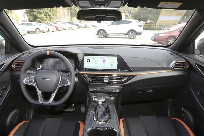 新车在空调出风口外围、方向盘顶端、中控台上下连接处、座椅、门板等多处增加了橙色元素,保证了车内的视觉与车外趋于同一,进一步保证了车内的运动氛围。