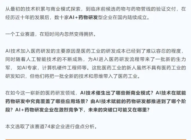 AI赋能药物研发,中国药企进展到了哪里?的评论 (共