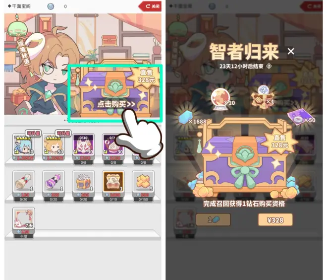 第一个奖励便与千面宝阁中的『智者回归礼』有关,信笺秘语填写完毕后,分享秘语的召唤师可以提前获得1钻石购买智者回归礼的资格,而填写信笺秘语的回归召唤师,则能够获得免费购买智者回归礼的资格。