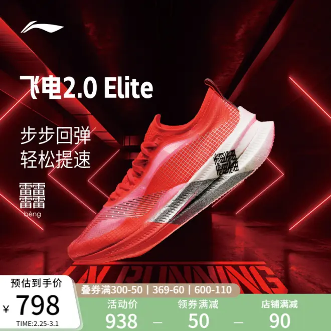总而言之,飞电2.0elite是李宁现阶段科技与设计的集大成者,其综合性能在中考1000m中也非常强劲,鞋面包裹、湿滑抓地力都是一流水准,跖枕带来的回弹和响应让人惊喜,推进力和过弯灵活性也做的比较均衡,稳定性是其最短板要也要留意,更适合前掌跑法跑者,具有一定的雨战能力。目前二级市场价格大概1199(女码PDD会便宜一些),价格略高,但是预算充足的话非常建议入手。(不建议买beng丝版,会偏软一点)。
