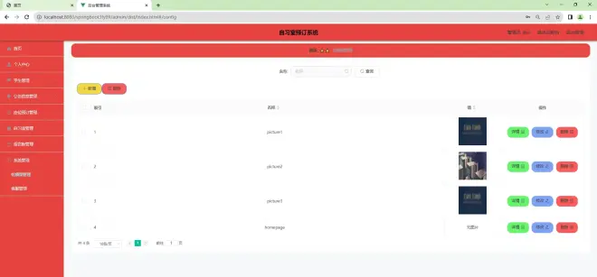 学生-功能:登录、注册、首页、公告信息、自习室、留言反馈、个人中心、后台管理、客服、修改密码个人信息、座位预订管理、留言板管理