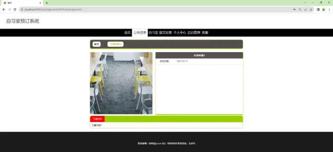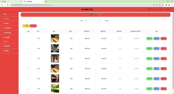 基于springboot的自习室预定管理系统,自习室管理系统,分为学生和管理员两个角色。
