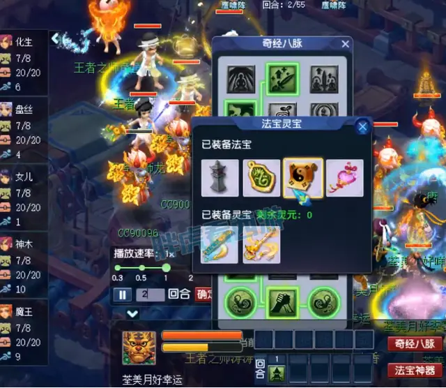 阵容情况:珍宝阁(女儿村+盘丝洞+化生寺+神木林+魔王),明秀园(女儿村+无底洞+化生寺+地府+三扫大唐)。