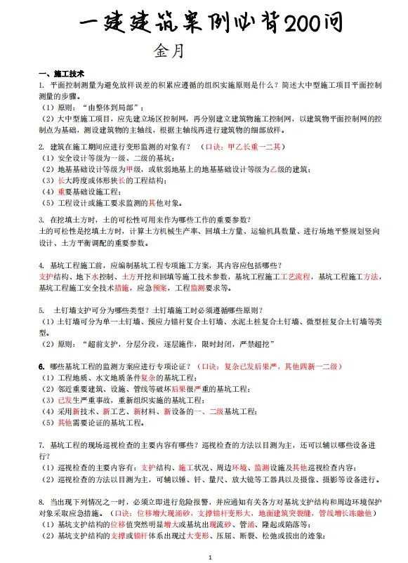 一建考试殊途同归都是在于教材,但不是一味的死磕教材,常考的知识点也就那么多。金月老师这200问都帮我们整理好了,拿到直接背,轻松拿下实务难题,火爆全网不是没有道理的!