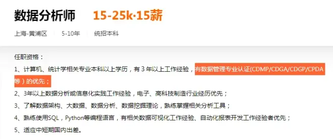 CDGA数据治理工程师证书很有必要考,含金量很不错。