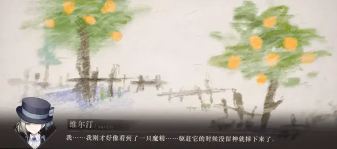 从游戏镜头语言的艺术中,我们同样能找到这种“一切景语皆情语”的电影感。在施耐德奄奄一息之时,游戏“闪回”式地将维尔汀与施耐德的儿时记忆呈现在玩家面前,一瓣一瓣剥落的橘子也隐喻着施耐德生命的消逝。第二章最后一幕中,餐桌上的人越来越少,最后只剩下神秘学家们,也暗示着其他人在“暴雨”中被无声地洗刷掉……