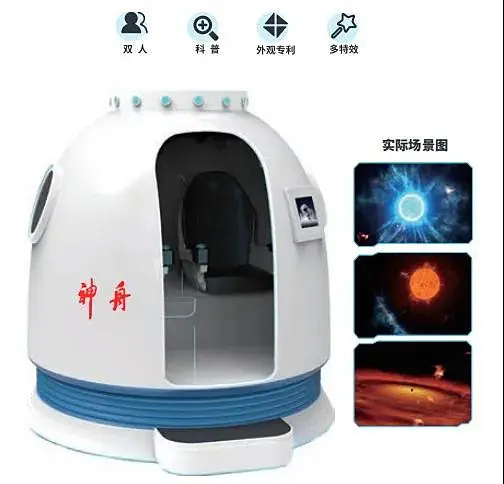 VR梦回神舟致敬中国航天之作,航空科学知识与VR黑科技的巧妙结合。外观模拟还原神舟系列飞船返回舱,可容纳两人并排乘坐其中,体验者带上VR眼镜,即可体验高度仿真的太空飞船宇宙航行!