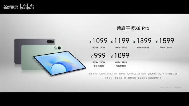 【荣耀平板 X8 Pro,正式发布:1099元起】