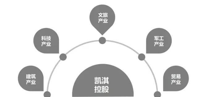 凯淇控股由五大产业构成,分别是建筑产业-朗尊建设集团;科技产业-知了谷;文旅产业-和韵文旅集团;军工产业-壹沃科技;贸易产业-忠博贸易。