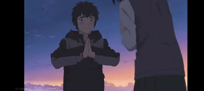 因为当时确实没钱,就去网上搜了盗版资源。 开始看的时候接近深夜,一个人,开着的电脑屏幕。 电影结尾之时已是半夜,不止的泪,一盒擦泪用完的纸巾。 “我已经可以去死了。”这是我在看完这部电影一段时间后的想法。 电影结束之后,身体受着大脑无意识地驱使开始不断循环三叶和泷最后的两次相遇(泷去拯救三叶那次和电影最后他们的那次)并且搜三叶和泷之后的故事。在恢复意识之后我又在想为什么这部电影会给我一种类似于久别重逢的特殊的感动。想着想着就凌晨3点多了,还是先去睡觉吧。 第二天醒来之后,这种感动一直萦绕在我的心头上,无论是在打游戏,回校的路上,还是正常在校听课,或是自习课,我一直在回味和消化这种感动。也多亏了这种情感,那段时间心头上除了这件事就是学习了,帮我排掉了一些扰心的杂事。为了更好地理解这种感动,我又把那本《你的名字。》小说读完了。 之后边读边想,想了很多,还想找个本把想的东西整理下来做个视频找找能够共鸣的人...因为视频技术力不高,自己说话鼻音很严重并带有一些口音,视频的事一拖再拖,于是现在就想着用专栏这种形式表达自己想说的东西:) 说说自己对这部电影的看法吧。