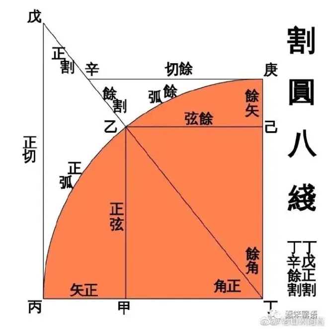 数学应该算是最讲究抽象的科学,今天我们使用的很多数学符号概念其实都是中国人的创造,是我们中国人自己的。比如:勾、股、弦,周,正弦、余弦、正切、余切、正割、余割,矩、弧,方程、解,三角、几何,代数、函数、微分、积分、导数等等。您是不是觉得这些符号概念是不是很“中国”?对呀!因为这些东西本来就是中国人发明发现的。下面几张图展示了其中一部分的数学符号概念的来源,请看:
