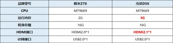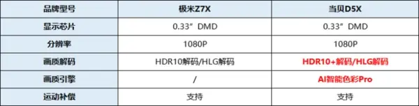 硬件配置对比:当贝D5X>极米Z7X